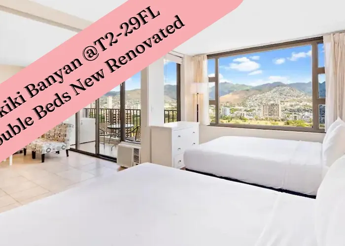 都市の景色を望む56m²のホノルルWaikiki Banyan T2-29Th 2Double Beds New Renovatedアパートメントは、スタン・シェリフ・センターから歩いて25分の場所に位置しています。 この寝室1室のアパートは、Wi-Fiなどのモダンな設備や、車でお越しの旅行者向けの駐車場などの必需品を提供しています。